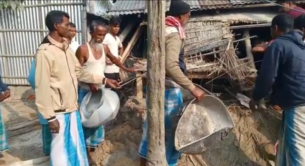 ✍️হাতীৰ জাকটোৱে উপদ্ৰৱ চলাই বিধৱা মহিলাগৰাকীৰ ঘৰৰ ভৰালৰ ধান, চাউল খাই তহিলং কৰাৰ লগতে ভাঙি লণ্ড ভণ্ড কৰে কাহি বাটিকে ধৰি ৰন্ধা বঢ়াৰ সামগ্ৰী সমূহ।