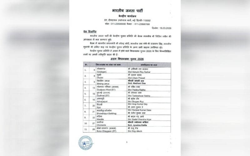 বিজেপিয়ে প্ৰকাশ কৰিলে প্ৰাৰ্থীৰ তালিকা