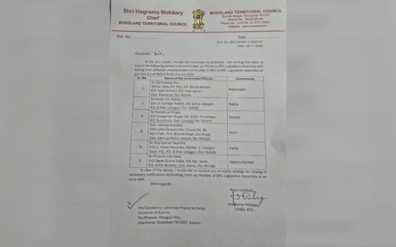 বড়োলেণ্ড টেৰিটৰিয়েল কাউঞ্চিলৰ এই শীতকালীন অধিৱেশনৰ সময়তে হাগ্ৰামা মহিলাৰীৰ নেতৃত্বত BTCৰ চৰকাৰত নতুনকৈ যোগদান কৰিছে ছয়জন মনোনীত MCLA- এ। নতুন এই ছয় MCLA- এৰ নিযুক্তি দিয়াৰ ক্ষেত্ৰত ৰাজ্যপালে অনুমোদন প্ৰদান কৰে।ছয়জন মনোনীত সদস্যৰ ভিতৰত আছে ক্ৰমে ৰাজবংশী জনগোষ্ঠীৰ পৰা কৰ্মেশ্বৰ ৰায়, ৰাভা জনগোষ্ঠীৰ বাবে ৰতন চন্দ্ৰ ৰাভা, গোৰ্খা জনগোষ্ঠীৰ পৰা নন্দলাল মোগৰ, কোচ জনগোষ্ঠীৰ পৰা হেমপ্ৰভা দেৱী, কলিতা জনগোষ্ঠীৰ পৰা অজয় ​​কুমাৰ হাজৰিকা আৰু শৰণীয়া–কছাৰী জনগোষ্ঠীৰ পৰা ৰিদীপ কুমাৰ ডেকা।ইতিমধ্যে পৰিষদলৈ মনোনিত ৬ সদস্যৰ তিনি গৰাকী ক্ৰমে অজয় কুমাৰ হাজৰিকা, কামেশ্বৰ ৰয় আৰু ৰতন চন্দ্ৰ ৰাভাই শপত গ্ৰহণ কৰিছে।