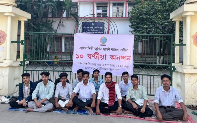 জুবিন গাৰ্গৰ ন্যায়ৰ দাবীত কটন বিশ্ববিদ্যালয়ত অনশন কাৰ্য্যসূচী। পুৱা ৮ বজাৰ পৰা ১০ ঘন্টীয়া অনশন কাৰ্যসূচী বিশ্ববিদ্যালয়ৰ মূখ্য প্ৰৱেশদ্বাৰৰ সন্মুখত গ্ৰহণ কৰিছে ছাত্ৰ ছাত্ৰী সকলে।