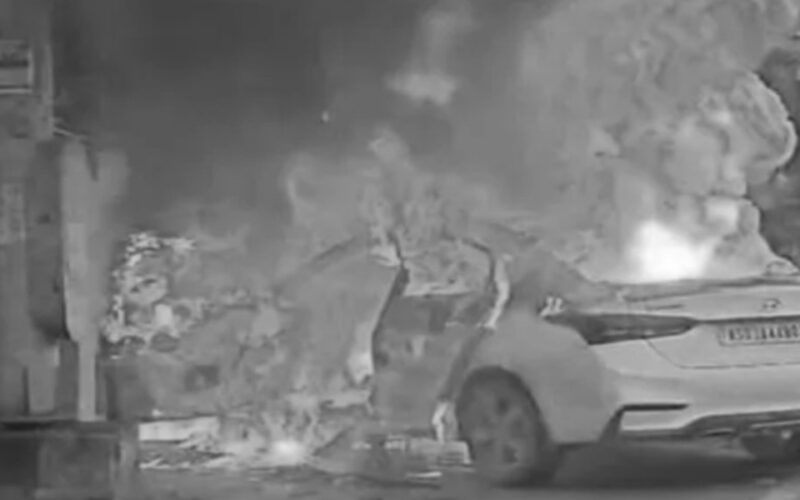 দুৰ্ঘটনাৰ পাছতে দপদপকৈ জ্বলি উঠে বাহনখন।
