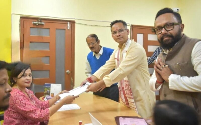 অসম বিধানসভা নিৰ্বাচনৰ ৰণক্ষেত্ৰত পদাৰ্পণ কৰিছে প্ৰদেশ কংগ্ৰেছৰ সভাপতি গৌৰৱ গগৈয়ে। লোকসভাৰ বিৰোধী উপ-দলপতিগৰাকীয়ে সোমবাৰে এক বিশাল শোভাযাত্ৰাৰ অন্তত যোৰহাট বিধানসভা সমষ্টিৰ বাবে নিজৰ মনোনয়ন পত্ৰ দাখিল কৰে। জিলা আয়ুক্তৰ কাৰ্যালয়ত মনোনয়ন দাখিলৰ পূৰ্বে তেওঁ যোৰহাট ষ্টেডিয়ামৰ পৰা এক বৃহৎ ৰোডশ্ব’ উলিয়াই নিজৰ সাংগঠনিক শক্তি প্ৰদৰ্শন কৰে।